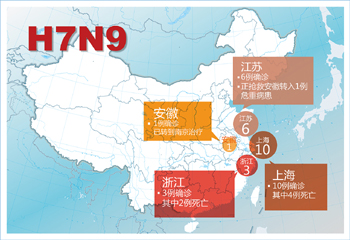 據(jù)中國(guó)疾病預(yù)防控制中心的統(tǒng)計(jì),截至7日17時(shí),全國(guó)共發(fā)現(xiàn)20例人感染H7N9禽流感確診病例,集中在上海、江蘇、浙江、安徽等地。其中7日上海市新確診2例人感染H7N9禽流感病例,均在救治中。至此,上海共發(fā)現(xiàn)10例人感染H7N9禽流感確診病例,其中死亡4例。