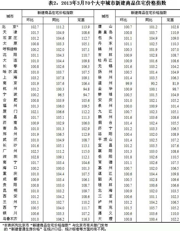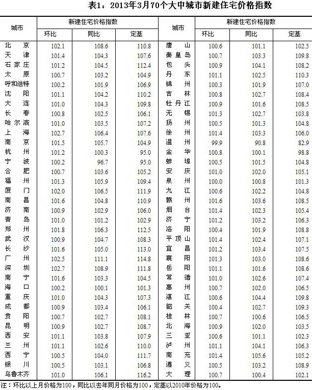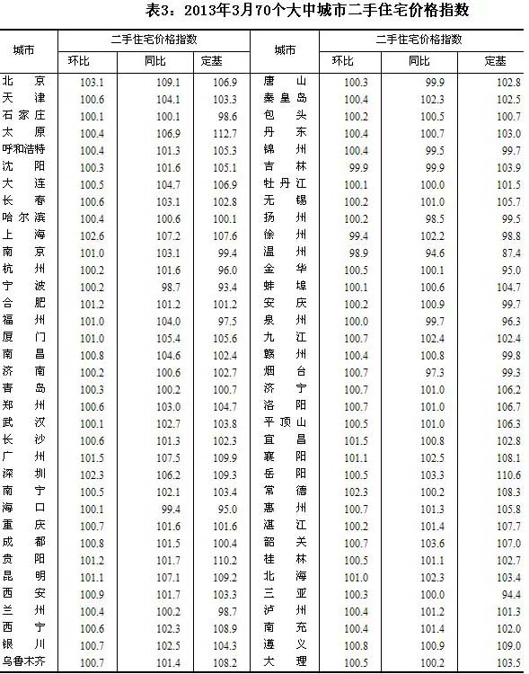 (二)與去年同月相比,70個(gè)大中城市中,價(jià)格下降的城市有9個(gè),持平的城市有2個(gè),上漲的城市有59個(gè)。3月份,同比價(jià)格上漲的城市中,漲幅最高為9.1%,漲幅比2月份回落的城市有2個(gè)。