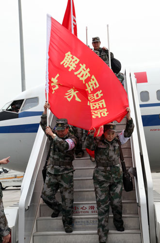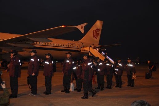 救援人員乘坐國航包機抵達成都。
