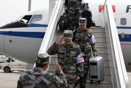 4月21日,解放軍總后勤部專家醫(yī)療隊乘坐國航波音737-800抵達成都。