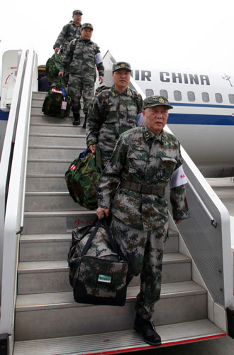 首批中國衛(wèi)生救援人員乘CA4116抵蓉。