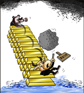 甚至有專家猜測,金價暴跌的背后主使人有可能是美聯(lián)儲,因其希望通過打壓金價來維護美元世界貨幣的低位。宋鴻兵分析認為,美國經(jīng)濟的復(fù)蘇主要是資產(chǎn)價格的復(fù)蘇,很大程度上須依賴超低利率的寬松政策。而黃金大幅上漲會使全球投資者對通脹預(yù)期發(fā)生變化,從而對利率市場的估值產(chǎn)生誤判,進而影響美國的股市和債市,對資產(chǎn)價格的上揚就會產(chǎn)生極大的壓制作用,甚至?xí)拐麄資產(chǎn)價格的復(fù)蘇出現(xiàn)夭折!敖饍r上漲,對美經(jīng)濟以及資產(chǎn)價格復(fù)蘇會產(chǎn)生沉重打擊,這就是美不喜歡看到金價上漲的主要原因!