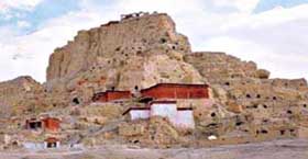 置身孜珠寺千年古剎,請用心靈感應(yīng)本土宗教的靈魂翱翔于孜珠山的嶙峋巨石之間的美妙。孜珠山山勢奇特,山峰狀如泉華石筍,主峰上果然有一處自然形成的門,目光穿過洞開之門,可見遠(yuǎn)方藍(lán)天。孜珠寺的僧房錯落鑲嵌其間,顯得神圣而雅致。