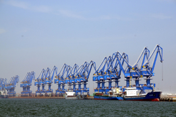 截至2013年3月,曹妃甸港區(qū)已建成煤炭、礦石、原油、散雜、件雜、多用途等泊位47個,年設(shè)計通過能力2.73億噸;在建泊位28個,新增設(shè)計能力1.78億噸。2013年整個港區(qū)吞吐量預(yù)計突破2.3億噸,到“十二五”末,港區(qū)設(shè)計通過能力可達(dá)4.5億噸。