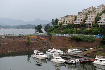 近期有網(wǎng)絡報道稱,在千島湖畔的淳安縣,存在一個違規(guī)建設運營的高爾夫球場,而部分臨湖開發(fā)的房地產(chǎn)和酒店項目建設開發(fā)過程中出現(xiàn)填湖圍地狀況,對千島湖水質(zhì)和環(huán)境造成了影響。新華社記者為此趕赴淳安,對此進行了調(diào)查。圖為浙江省杭州市淳安縣臨近千島湖的一處房地產(chǎn)和酒店項目建設工地,部分臨湖項目建設開發(fā)過程中出現(xiàn)填湖圍地狀況,對千島湖水質(zhì)和環(huán)境造成了影響。記者