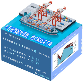 10日公布的進(jìn)出口數(shù)據(jù)雙雙負(fù)增長(zhǎng)進(jìn)一步增加了市場(chǎng)的悲觀預(yù)期。6月出口額同比下降3.1%,環(huán)比下降4.6%;進(jìn)口額同比下降0.7%,環(huán)比下降9.3%,遠(yuǎn)低于市場(chǎng)預(yù)期。