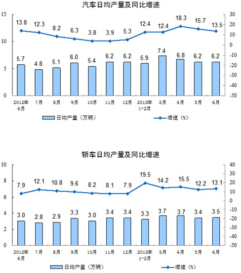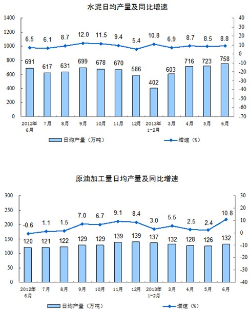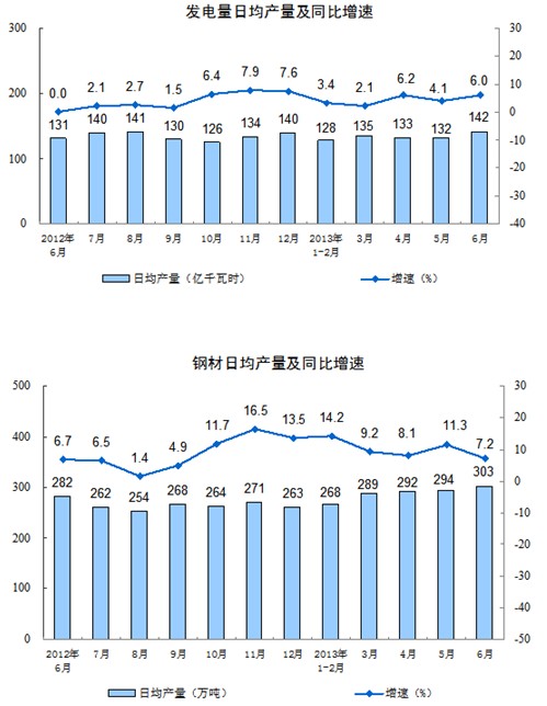 分產(chǎn)品看,6月份,464種產(chǎn)品中有310種產(chǎn)品同比增長(zhǎng)。其中,發(fā)電量4253億千瓦時(shí),同比增長(zhǎng)6.0%;鋼材9084萬(wàn)噸,增長(zhǎng)7.2%;水泥22754萬(wàn)噸,增長(zhǎng)8.8%;原油加工量3960萬(wàn)噸,增長(zhǎng)10.8%;十種有色金屬343萬(wàn)噸,增長(zhǎng)6.7%;乙烯132萬(wàn)噸,增長(zhǎng)11.1%;汽車185.2萬(wàn)輛,增長(zhǎng)13.5%;轎車103.7萬(wàn)輛,增長(zhǎng)13.1%。