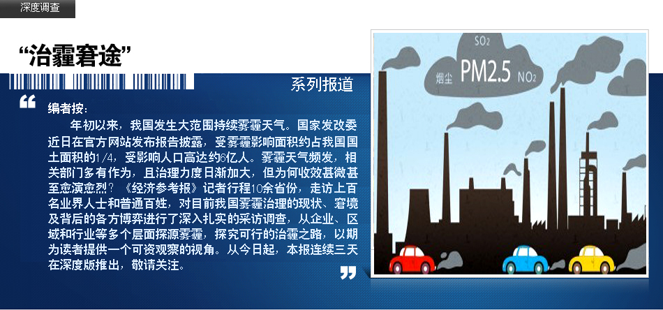 企業(yè)守法反吃虧 《經(jīng)濟參考報》記者調研發(fā)現(xiàn),環(huán)保部門在霧霾治理中同時存在著“監(jiān)管越位”和“監(jiān)管缺位”現(xiàn)象:一方面,大型火電企業(yè)實施著全球最嚴的排放標準,卻面臨環(huán)保部門“拍腦門”掀起的環(huán)保風暴,多頭監(jiān)管、指標加碼、政策頻變導致企業(yè)無所適從;另一方面,“有法不依、執(zhí)法不嚴、違法不究”現(xiàn)象仍存在,一些企業(yè)斥巨資搞環(huán)保只能是賠錢賺吆喝…【全文】 | |