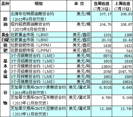 國際大宗商品期貨價(jià)格明細(xì)表[2013-07-29]