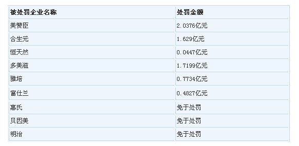 國(guó)家發(fā)展和改革委員會(huì)7日宣布,合生元等6家乳粉生產(chǎn)企業(yè)因違反《反壟斷法》限制競(jìng)爭(zhēng)行為共被罰約6.7億元,成為我國(guó)反壟斷史上開(kāi)出的最大罰單。3家企業(yè)因配合執(zhí)法機(jī)關(guān)調(diào)查并積極整改被免除處罰。