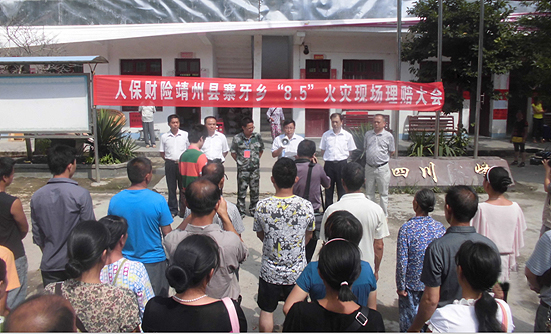 8月9日上午懷化靖州縣召開火災理賠現(xiàn)場會議,為在“8·5”