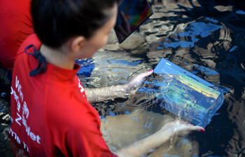15日,澳大利亞悉尼,一名模特在水中使用索尼公司最新的防水型平板電腦。索尼今年推出了具有防水功能的平板電腦Xperia Tablet Z,據(jù)稱可以在水深一米之內(nèi)使用。