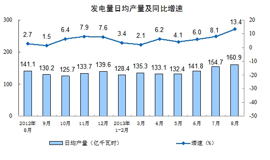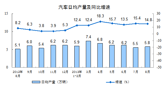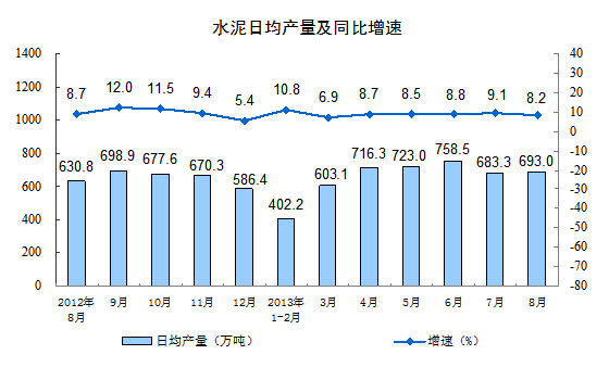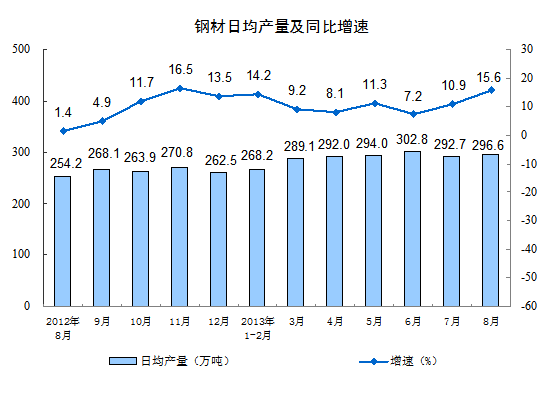 分產(chǎn)品看,8月份,464種產(chǎn)品中有305種產(chǎn)品同比增長。其中,發(fā)電量4987億千瓦時,同比增長13.4%;鋼材9194萬噸,增長15.6%;水泥21484萬噸,增長8.2%;原油加工量3974萬噸,增長5.5%;十種有色金屬337萬噸,增長5.7%;乙烯126萬噸,增長7.7%;汽車179.6萬輛,增長14.8%;轎車102.3萬輛,增長11.2%。