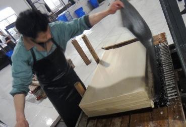 鉛山連四紙產(chǎn)地分布在武夷山脈南、北麓,鼎盛時期有紙槽兩千余張!捌埐灰椎,措手七十二”,連四紙的制作工藝程序十分考究。原料要用毛竹的嫩竹竿,在立夏前后嫩竹將要長出兩對芽葉的時候砍伐取用。紙料需經(jīng)幾個月的日曬雨淋,使之自然漂白,生產(chǎn)周期長達一年。連四紙依靠手工操作制成,無理化指標,全憑經(jīng)驗駕馭。制造過程的技術(shù)關(guān)鍵:一是水質(zhì),凡沖、浸、漂、洗所接觸的水均不能有任何污染,須采用當?shù)厝?二是配藥,藥系采用水卵蟲樹制成。