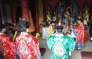 唱腔、舞蹈等新的形式,制訂了一整套完整的齋醮儀范。到唐代,道教為國教,齋醮活動盛行并逐漸成熟。歷宋、元、明、清,一部份科儀亡佚,大部份完善并傳承至今。