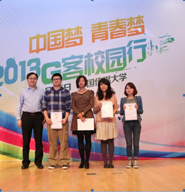 9月25日,“中國夢 青春夢——2013G客G拍原創(chuàng)視頻大賽”北京站校園活動,在中國傳媒大學正式啟動,這也是本年度G客G拍原創(chuàng)視頻大賽的重點活動之一。中國移動2013G客G拍原創(chuàng)視頻大賽分為六大板塊:作品征集、G客G拍校園行、新媒體展映、手機院線發(fā)行、作品評選、G客盛典。截止到11月15日之前,感興趣的觀眾均可以通過互聯網(大賽官網www.gkgp.com)或新浪微博(官微:G客G拍)上傳作品,參與比賽。