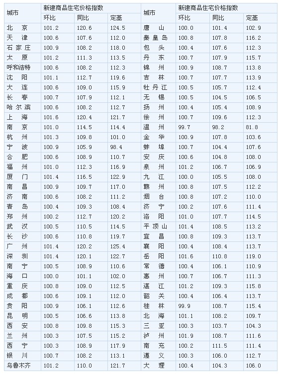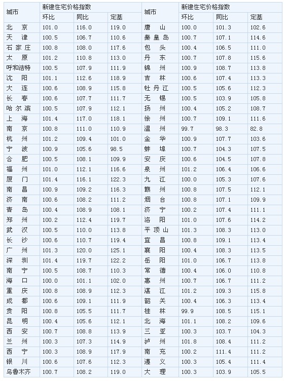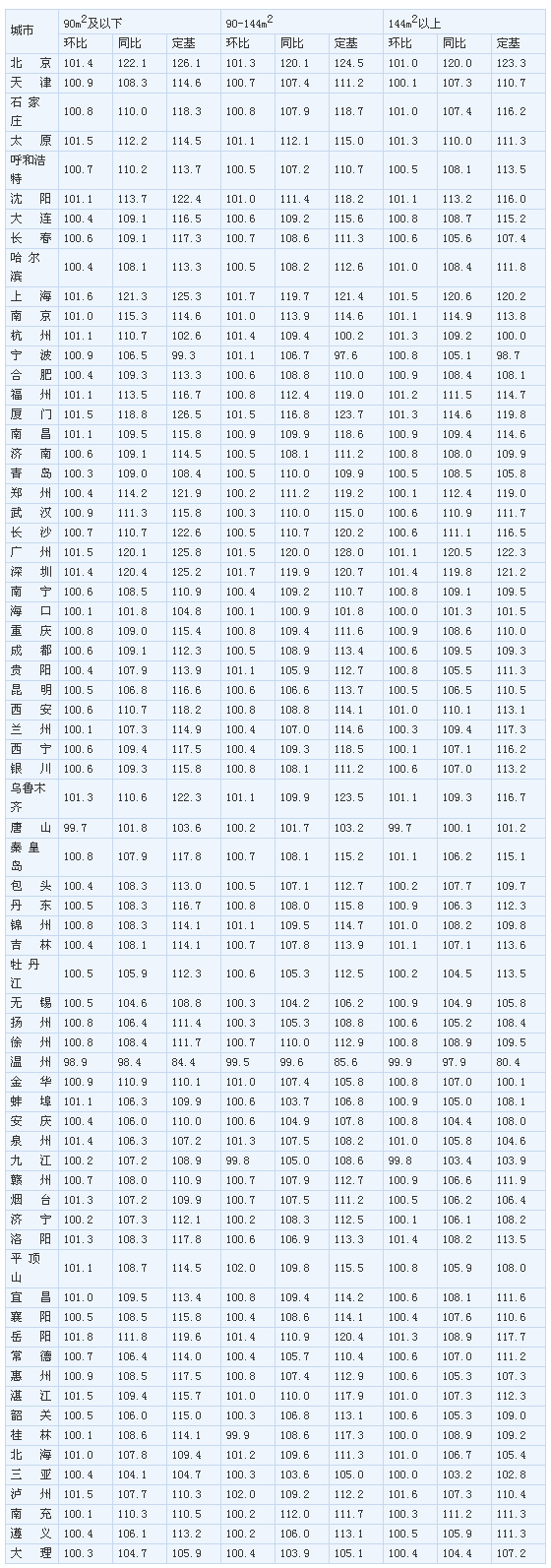 注:環(huán)比以上月價(jià)格為100,同比以去年同月價(jià)格為100,定基以2010年價(jià)格為100。