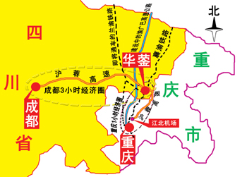 省轄縣級(jí)市華鎣市,幅員面積470平方公里,是四川以東進(jìn)出重慶的門(mén)戶,距重慶、成都分別為80和300公里,僅1小時(shí)和3小時(shí)車程。長(zhǎng)江二級(jí)支流渠江流經(jīng)市境20多公里,正規(guī)劃建設(shè)的廣安港明月作業(yè)區(qū),是華鎣市作為成渝經(jīng)濟(jì)區(qū)的示范區(qū)、打造川渝經(jīng)濟(jì)合作“橋頭堡”的重要支撐,建成后千噸貨運(yùn)將直抵上海。