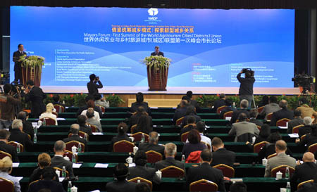 10月27日,世界休閑農(nóng)業(yè)與鄉(xiāng)村旅游城市(城區(qū))聯(lián)盟成立大會暨第一次峰會閉幕式在長沙望城千龍湖體育館舉行。為期3天的峰會聚集了全球五大洲46國駐華使節(jié)、26國城市市長代表,打造了一個以休閑農(nóng)業(yè)為內(nèi)容,以鄉(xiāng)村旅游為形式的跨國平臺。