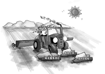 《經(jīng)濟(jì)參考報》記者采訪發(fā)現(xiàn),隨著農(nóng)村土地流轉(zhuǎn)的加速,各地種糧大戶不斷涌現(xiàn),但與之相配套的農(nóng)技推廣、農(nóng)機(jī)服務(wù)、病蟲害防治、市場信息、產(chǎn)品營銷等農(nóng)業(yè)社會化服務(wù)發(fā)展相對滯后。社會化服務(wù)供給不足,使不少種糧大戶不得不“自操自辦”,甚至患上“大包大攬癥”。