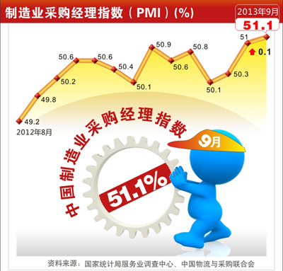 多家機(jī)構(gòu)預(yù)測(cè),于今日公布的10月制造業(yè)采購經(jīng)理人指數(shù)(官方PMI)將連續(xù)第13個(gè)月位于擴(kuò)張區(qū)間,而且可能不會(huì)低于9月的51.1%。在十八屆三中全會(huì)即將召開之際,海內(nèi)外主流機(jī)構(gòu)紛紛表態(tài),看好中國(guó)經(jīng)濟(jì)后期走勢(shì)。