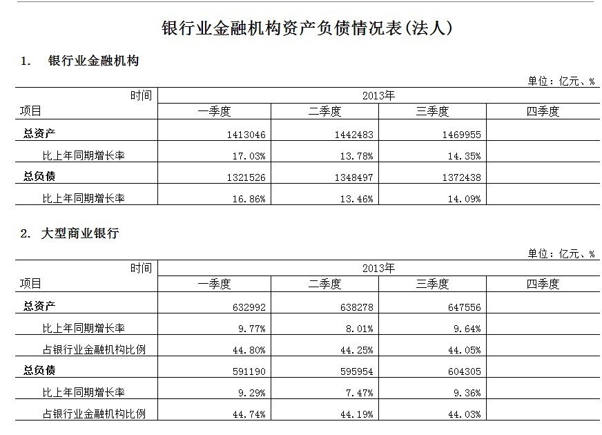 截至三季度末,銀行業(yè)金融機(jī)構(gòu)總資產(chǎn)為1469955億元,同比增長(zhǎng)14.35%,總負(fù)債為1372438億元,同比增長(zhǎng)14.09%。