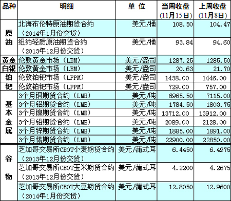 國(guó)際大宗商品期貨價(jià)格明細(xì)表[2013-11-18]