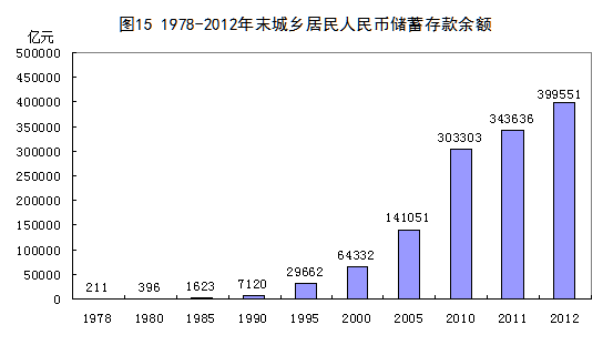 城鄉(xiāng)居民收入顯著提高。35年來,黨中央、國務(wù)院深化收入分配制度改革,努力實現(xiàn)居民收入增長和經(jīng)濟發(fā)展同步、勞動報酬增長和勞動生產(chǎn)率提高同步,效率和公平兼顧,確保了城鄉(xiāng)居民收入和財富的快速增長。2012年,城鎮(zhèn)居民人均可支配收入24565元,比1978年增長71倍,年均增長13.4%,扣除價格因素,年均增長7.4%;農(nóng)村居民人均純收入7917元,增長58倍,年均增長12.8%,扣除價格因素,年均增長7.5%。城鄉(xiāng)居民擁有的財富顯著增加。2012年末,城鄉(xiāng)居民人民幣儲蓄存款余額39.96萬億元,比1978年末增長1896倍,年均增長24.9%。股票、債券等金融資產(chǎn)規(guī)模不斷擴大。城鎮(zhèn)居民擁有的財產(chǎn)性收入從無到有,2012年占人均全部年收入比重上升到2.6%。
