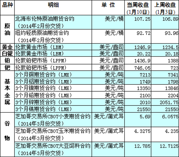 國(guó)際大宗商品期貨價(jià)格明細(xì)表[2014-1-13]