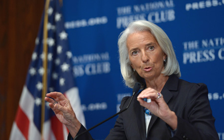 1月15日,國際貨幣基金組織(IMF)總裁拉加德在美國首都華盛頓的全國記者協(xié)會發(fā)表講話。 拉加德15日說,全球經(jīng)濟增長勢頭在2013年下半年得到提升,預(yù)計2014年將進(jìn)一步走強,但世界經(jīng)濟還存在金融市場動蕩和資本流動波動的風(fēng)險。