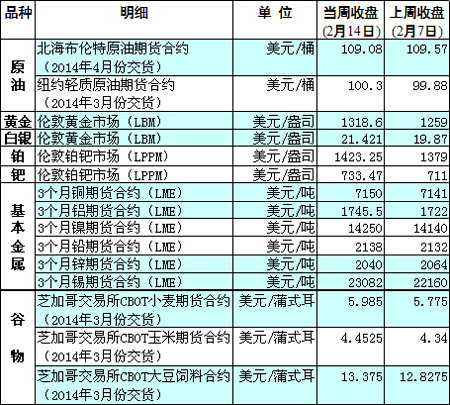 國(guó)際大宗商品期貨價(jià)格明細(xì)表[2014-2-17]