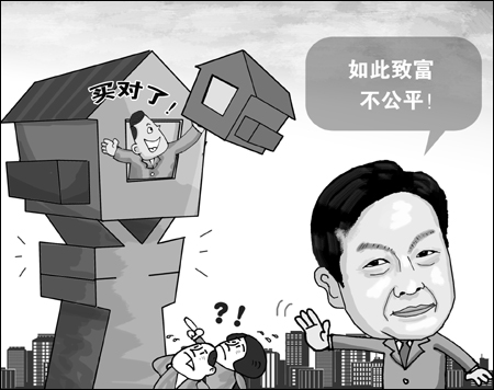 全國政協(xié)委員、住建部副部長仇保興表示,北京、上海流行一句話,買對一套房,生活質(zhì)量拉開1個(gè)檔次;買對兩套房,拉開2個(gè)檔次。百姓這個(gè)經(jīng)驗(yàn)是非常有害的,不靠創(chuàng)業(yè)、勤勞致富,買對房就能致富,代替幾十年辛苦勞動(dòng),這樣的社會(huì)不可能公平。