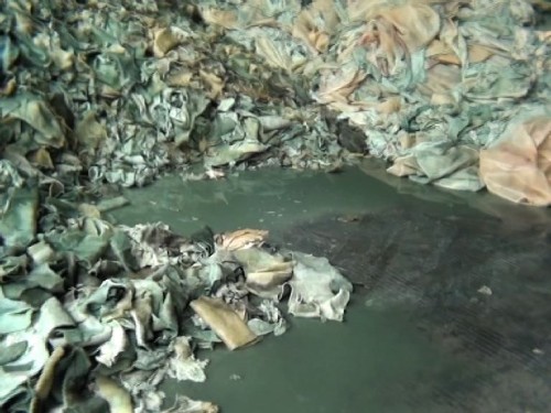 在河北省無極縣,一家制革廠的負責人對記者說:這種垃圾皮料不會輕易腐爛的,硫化鈉,基本上就是保鮮了。再用上石灰、火堿等工業(yè)原料,放十天二十天的都不會壞,也不會生蟲。