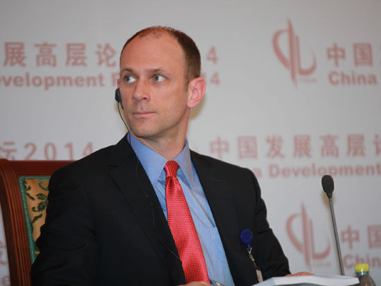 “中國發(fā)展高層論壇2014”于3月22日-24日在釣魚臺舉行。上圖為美國芝加哥大學教授;美國總統(tǒng)經濟顧問委員會前主席奧斯坦-古斯比。