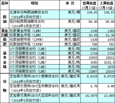 國(guó)際大宗商品期貨價(jià)格明細(xì)表[2014-3-24]