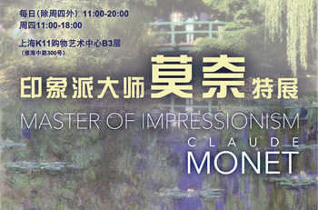 2014年3月8日到6月15日,上海將迎來一場為期三個多月的“莫奈盛宴”,展覽將展出52幅印象派大師真跡。其中包括40幅“印象派之父”克勞德·莫奈作品、12幅莫奈收藏的印象派畫家雷諾阿等人的作品,另有3件莫奈生前所用物品。莫奈真跡中有其晚年的名作,3米長的《紫藤》和2米高的《睡蓮》,此外,莫奈在十幾歲時畫的諷刺漫畫也是難得一見的珍品。本次展覽系“中法建交50周年”的慶典活動之一,作品均來自巴黎馬摩丹莫奈美術(shù)館,該館是全球收藏莫奈作品最多的美術(shù)館之一,其莫奈藏品全部來自于莫奈之子米歇爾的捐贈。據(jù)悉,此次展覽保費達(dá)6億歐元。