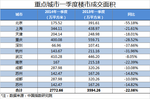 據(jù)大智慧通訊社統(tǒng)計,今年一季度,包括北京、上海在內(nèi)的12個重點城市樓市成交面積合計為2772.66萬平方米,而在去年一季度,這一數(shù)據(jù)為3594.26萬平方米,同比減少了821.60萬平方米,降幅達到22.86%。
