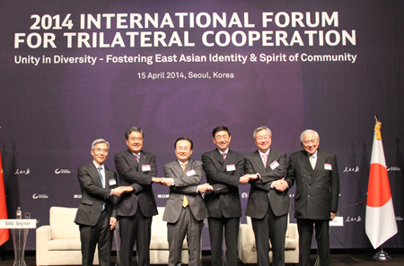中國(guó)、日本、韓國(guó)的專(zhuān)家學(xué)者15日在“2014年三國(guó)合作國(guó)際論壇”上表示,在面臨問(wèn)題和挑戰(zhàn)時(shí),中日韓三國(guó)應(yīng)求同存異、推動(dòng)合作。本次論壇由三國(guó)政府間合作機(jī)構(gòu)中日韓三國(guó)合作秘書(shū)處主辦,主題為“異中有同——塑造東亞身份認(rèn)同和共同體意識(shí)”。來(lái)自三國(guó)的官員、知名學(xué)者和外交人士等參加。