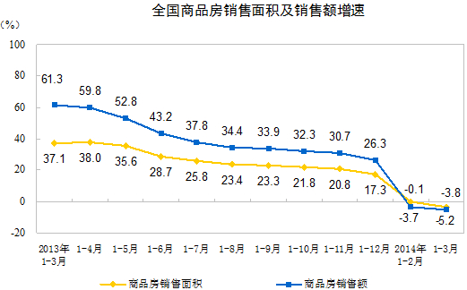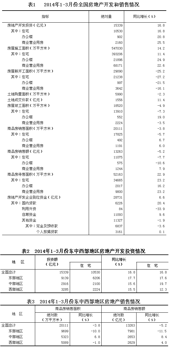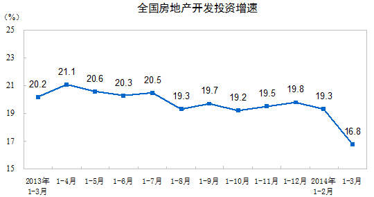2014年1-3月份,全國(guó)房地產(chǎn)開(kāi)發(fā)投資15339億元,同比名義增長(zhǎng)16.8%(扣除價(jià)格因素實(shí)際增長(zhǎng)15.5%),增速比1-2月份回落2.5個(gè)百分點(diǎn)。其中,住宅投資10530億元,增長(zhǎng)16.8%,增速回落1.6個(gè)百分點(diǎn),占房地產(chǎn)開(kāi)發(fā)投資的比重為68.7%。