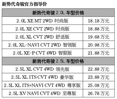此次,新勢代奇駿2.0L