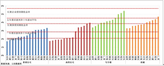 圖2 各城市各物業(yè)長(zhǎng)期租賃回報(bào)率