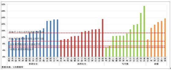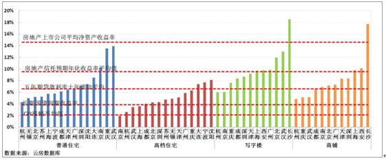 圖1 各城市各物業(yè)靜態(tài)租賃回報(bào)率
