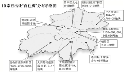 北京已經(jīng)有9個(gè)自住房項(xiàng)目啟動(dòng)申請(qǐng),可提供自住房約15000套。北京在2014年全年供應(yīng)的自住房量將突破4萬套。圖為10宗已出讓“自住房”分布示意圖。