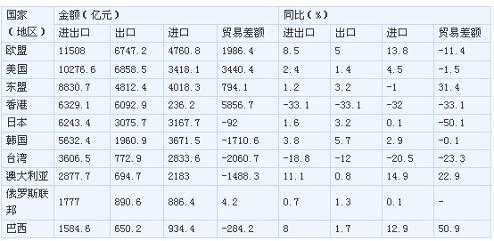 ,比去年同期(下同)下降3.1%。其中,出口4.16萬億元,下降4.8%;進口3.94萬億元,下降1.2%;貿(mào)易順差2154億元,減少42.9%。