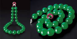 在4月7日結(jié)束的蘇富比香港春拍“瑰麗珠寶及翡翠首飾”專場,來自傳奇名媛芭芭拉·赫頓舊藏之天然翡翠珠項鏈經(jīng)七名投標(biāo)者歷時20分鐘激烈競投后,以2.14億港元天價成交,刷新翡翠首飾以及卡地亞首飾的世界拍賣紀(jì)錄。這個天價神話引起了玉石收藏圈子的廣泛關(guān)注,一些關(guān)于翡翠行情的消息也不脛而走。雖然翡翠在未來具有較大的升值空間,但是藏家在收藏翡翠時切忌盲目,并不是所有的翡翠都具有升值潛力。目前市面上需求最旺的,零售價為1000到5000元的翡翠制品多為流通飾品,只能消費(fèi)而不具備投資價值。真正有投資價值的是那些收藏級翡翠制品。比如此串翡翠珠項鏈,其上27顆翡翠珠子顆顆正綠碩大,直徑為15.40毫米至19.20毫米,洋溢著皇家氣派,乃清宮遺物,世間罕見。流傳有序,曾經(jīng)擁有過它的人都是世界名流也是其天價的原因之一。翡翠收藏愛好者需要明白的是,藝術(shù)品投資是一項長線投資,作為收藏者首先要懂得欣賞。如果只抱著投機(jī)的態(tài)度入市,那是一件很危險的事。