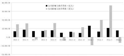 一般而言,M2增速與存款增速應(yīng)該保持一致,不過,4月M2增速與存款增速出現(xiàn)了一定程度背離。數(shù)據(jù)顯示,4月當(dāng)月人民幣存款減少6546億元,同比多減5545億元。4月末銀行存款余額同比增速為11.1%,較3月末下降了0.3個百分點,低于去年年末2.7個百分點。趙慶明表示,人民幣存款減少主要來自于住戶存款,可能與理財產(chǎn)品和“寶寶”們分流有關(guān)。另外,住戶存款減少也可能和消費增加或收入減少有關(guān)。