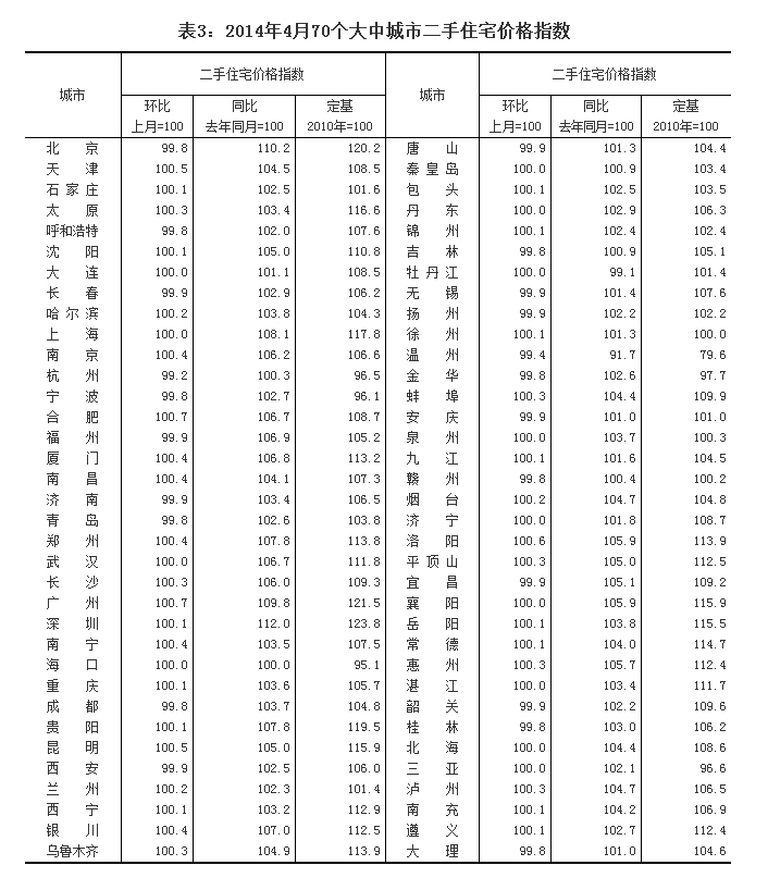 3、調(diào)查方法。70個大中城市的新建住宅銷售價格、面積、金額等資料直接采用當?shù)胤康禺a(chǎn)管理部門的網(wǎng)簽數(shù)據(jù)。二手住宅銷售價格調(diào)查為非全面調(diào)查,采用重點調(diào)查和典型調(diào)查相結合的方法,按照房地產(chǎn)經(jīng)紀機構上報、房地產(chǎn)管理部門提供與調(diào)查員實地采價相結合的方式收集基礎數(shù)據(jù)。
