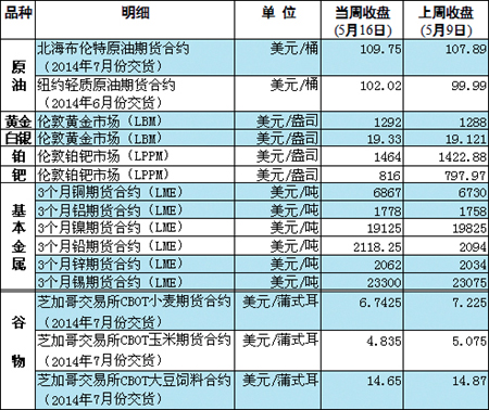 國(guó)際大宗商品期貨價(jià)格明細(xì)表[2014-5-19]