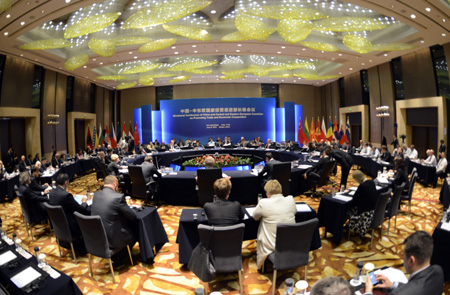 中國——中東歐國家經(jīng)貿(mào)促進(jìn)部長級會議6月8日在浙江寧波舉行。 商務(wù)部部長高虎城介紹,中國與中東歐國家貿(mào)易額由2003年的87億美元增至2013年的551億美元;中國在中東歐國家投資由不足1億美元增至近50億美元;中東歐國家在華投資由4.2億美元增至12億美元。