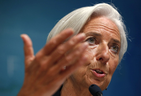 圖為國(guó)際貨幣基金組織總裁拉加德當(dāng)日在美國(guó)華盛頓舉行的新聞發(fā)布會(huì)上講話。